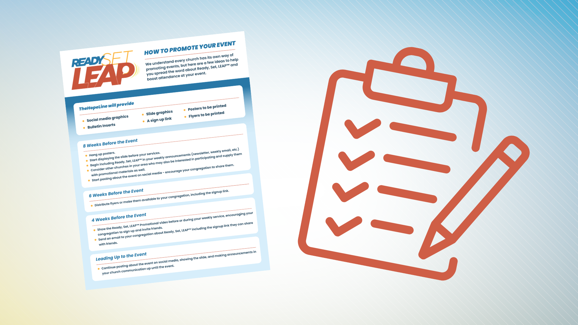 On this page you will find videos, slides, bulletin inserts, posters, flyers and more! Each item can be easily customized. However, if you would like assistance, please don't hesitate to reach out as we would be happy to help!